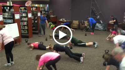 Crossfit Xtra Mile of Fenton came and did a program for the library on Tuseday night! Particpants got a good workout and a taste for what Crossfit is.